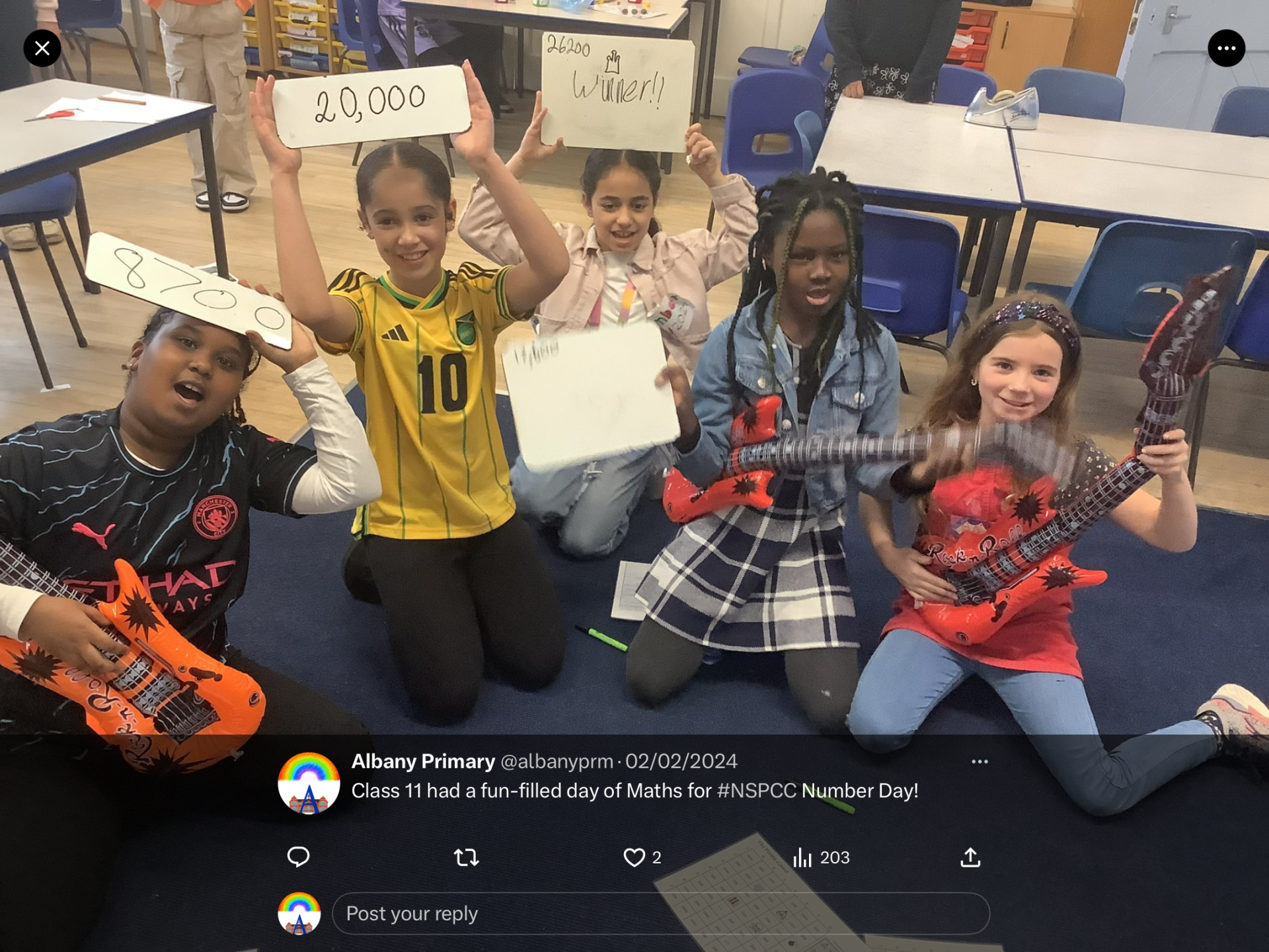 On February 2nd our Curriculum Committee led the school in participating in the NSPCC number day. They used this day to launch TT Rock Stars at Albany (an online maths challenge to help children develop their understanding of multiplication tables).